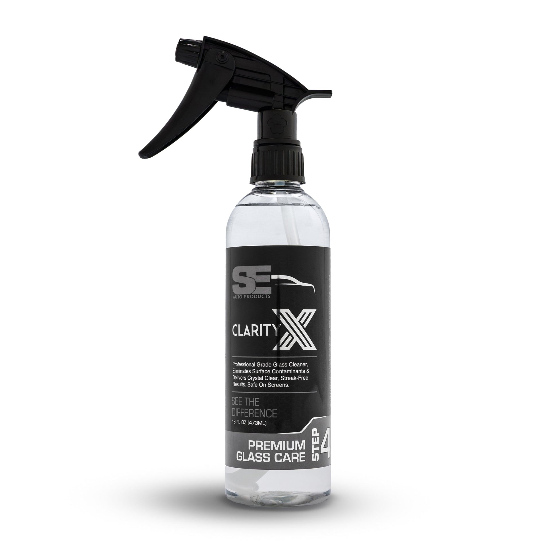 Clarity-X cuts through the toughest automotive grime, road film, and contaminants that household cleaners simply can't handle. Our advanced formula is specifically engineered for automotive glass, mirrors, chrome, polished surfaces, window tint, and GPS screens, delivering professional results that enhance both safety and aesthetics.